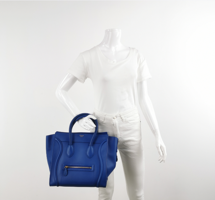Elevate your style with the Preloved Celine Luggage Bag. This mini 30cm beauty in a stunning blue hue is perfect for the fashion-forward woman who values both elegance and functionality. |